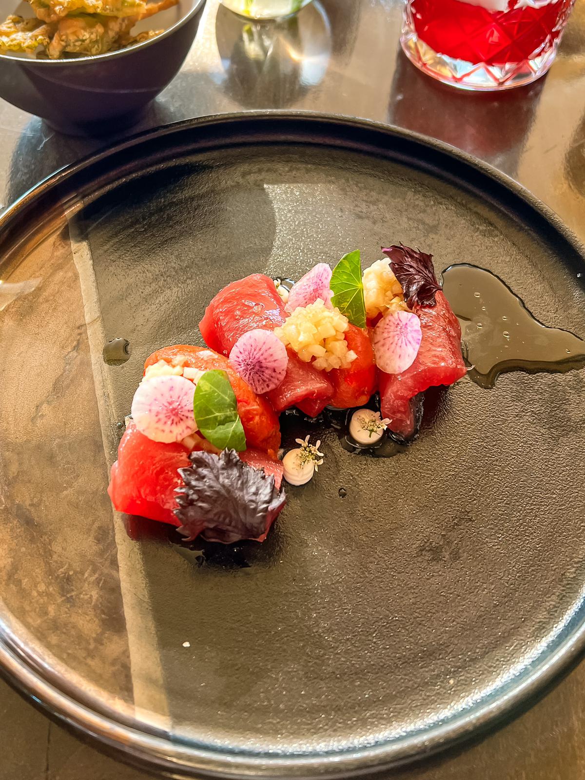 Passando agora para a comida, tudo é preparado com os melhores ingredientes sazonais da terra, mar e jardim, selecionados um por um pelos chefes. Os pratos são surpreendentes , com uma linda apresentação e deliciosos. “Yellowfin Tuna” é uma explosão de textura e sabor.