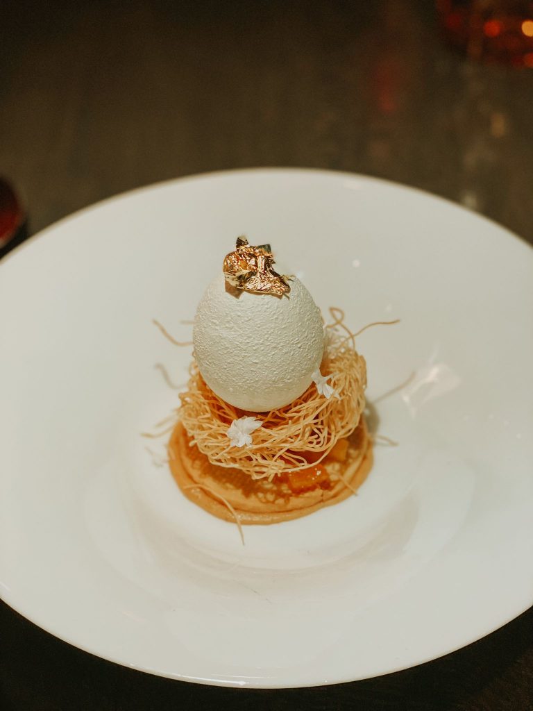 experimentar o “The Egg”. Um ovo de chocolate branco recheado com creme de amêndoa e abacaxi, surreal.